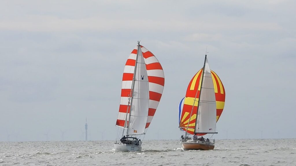 Het enthousiasme aan boord van de deelnemende schepen moet subtiel ingezet worden voor de lichtweeromstandigheden. De afspraak om toch alvast het eerste traject in te zetten resulteert in een trage ruimewindse start. Op verscheidene schepen vallen de spinakers maar net vol. Met geduldig zeil bijstellen en concentratie op vlagenbanen is het eerste traject van dag 1 begonnen. Langs de kust van Flevoland blijkt achteraf de ongunstige kant.