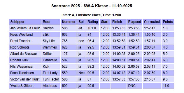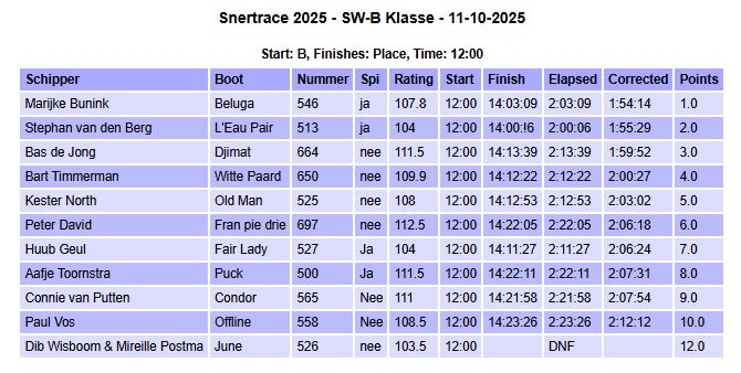 Uitslagen Snertrace 2025