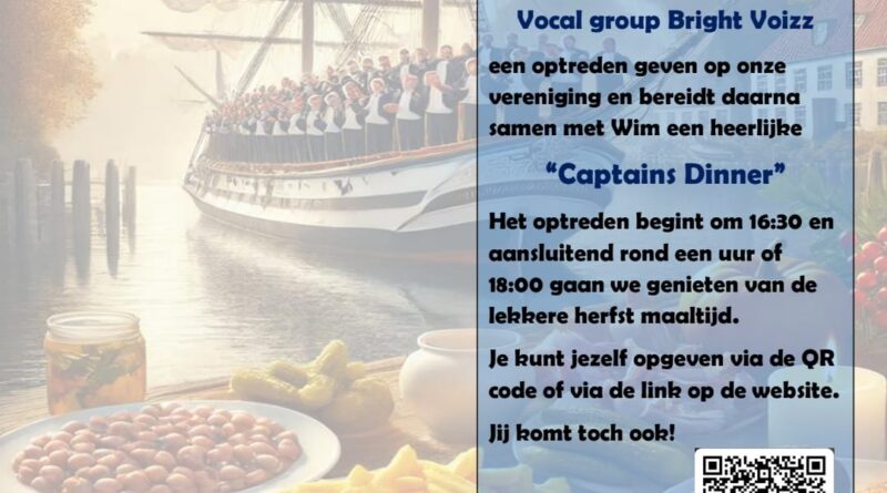 Zaterdag 23 november is er zang en dinner bij de AVOH.